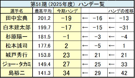 第51期(2025年度)ハンデキャップ