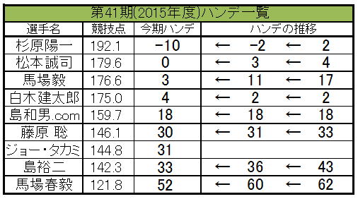第41期(2015年度)ハンデキャップ