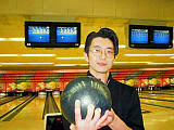 | 史上2度目のプレーオフは、最終戦と同日、時間をあらためて行われた。 第1ゲームはレーン状態の確認に手間取ったか、二人とも低調。 「このままのスコアなら優勝資格剥奪」などという冗談もギャラリーから飛び 出す始末だった。 しかしさすがはチャンピオン(候補)。第2ゲームで口羽が怒濤のストライク 攻勢をかけ、227(素点208)。一方の杉原は2ガーターなど未だレーンが 読み切れない。 第3ゲームも杉原は爆発できない。2フレをオープンし5フレ段階で78点 (+スペア分)。口羽は余裕でフィナーレへ向けて流している感じだ。 しかし第6フレでストライクを獲った杉原は、7フレでも幸運なストライクを 拾い、続けて8フレ9フレでもストライク。計算すると6フレ以降はストライク 以外は許されない状況だったのだ。 このあとも10フレの1投目もストライクは必須、2投目9本、3等目カバーで ようやく口羽を逆転するというプレッシャーのかかる状況。 しかし杉原は10フレ第1投をストライク、第2投もストライク、第3投もストラ イクとけっきょく6フレから7連続ストライクで239(素点238)を出し、驚異の 逆転勝利を収めた。 |