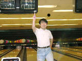 | 昨年に引き続き、第1ゲームから熱のこもった試合展開。とくにゲーム開始3フレームはお互いにストライク・スペアを交互に取り合う200点ペース。頂上決戦にふさわしい幕開けとなった。その後、第4フレームをオープンした岩田に対し、白木は着実にスペアを確保、けっきょく10フレまで白木はオープンすることなく、フルマークの偉業で緒戦を取った。 第2ゲームは、お互いスタートの2フレをオープンするという波乱の幕開け。しかし3フレから白木が軌道修正に向かったのに対し、岩田は波に乗れず、連敗を喫した。後から振り返ると白木の乱調はこの第2ゲームの序盤だけで岩田としては千載一遇のチャンスを逃してしまったといえる。 第3ゲームも白木は全く隙を見せず。安定したフォームから繰り出されるコントロールされたボールで着々とマークを重ねて、岩田にプレッシャーをかけ続けた。岩田としてはストライク・ラッシュで優位に立ちたいところだったが、逆に力みが入り、ますますコントロールを乱すという悪循環。 第4戦も白木はスプリット以外は全てマーク。最後の最後にこの日、初となるターキーを決め200UP、シリーズを締めくくった。 白木は4ゲーム通してオープンしたフレームがたったの6(うちスプリット2)とアベレージボウラーにふさわしい安定した内容で4戦全勝で岩田を下し2度目となる年間チャンピオンに輝いた。また千里シリーズ2位となるアベレージ185を記録。 |