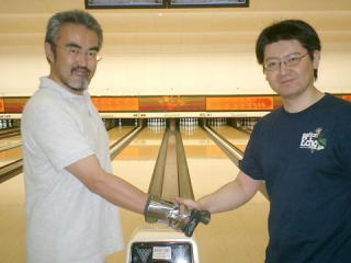 | 岩田選手は予選第2ゲームからボールがレーンの中央に集まらない。第1ゲームはノーマークで129(71)。一方の松本誠選手はスペアを重ねたあと、5連続ストライク。中盤でハンデ差を解消。圧勝した。 第2ゲームも第1ゲームのカーボンコピーの展開。松本誠選手は始めの2フレこそオープンしたものの4フレからまたも5連続ストライク。これまた中盤でハンデ差を解消。圧巻の連続200Upで2勝、優勝に王手をかけた。 第3ゲームは松本誠選手がスプリット禍に巻き込まれ自滅。一方の岩田選手はボールが集まりだし、中盤には4連続マークも記録、復調した。 第4ゲームはこの日最高に盛り上がった試合となった。完全復調した岩田選手が中盤に6連続マークを記録すれば、松本誠選手も1フレのスプリットを除き、フルマーク。中盤からの4連続ストライクなどでスコアを伸ばす。10フレで岩田選手はオープン、一方の松本誠選手はスペア。ラストの一投で9ピン倒せば松本誠選手の勝ちが決まる所だったが、倒れたピンは6本。2ピン差で岩田選手がこのゲームを取り、2勝2敗のタイとなった。 最終第5ゲームは松本誠選手が3連続ストライクで幕を開け、一方の岩田選手は3連続オープン。いきなり50点の差が縮まったが…。 4フレからは急に風向きが変わったように攻勢が逆転。岩田選手のオープンが減り、オープンフレームも得点を重ねるようになった。一方の松本誠選手は4フレからこの日唯一となる4連続オープン。後半ストライクを重ねるも焼け石に水。13点差で岩田選手がこのゲームも取った。 岩田選手は、2連敗のあとの3連勝で千里シリーズ初優勝を決めた。また奈良県勢としては初の優勝で、優勝トロフィーはこの日、生駒山を越えた。 敗れた松本誠選手も、千里シリーズ一位タイ記録となるストライク平均5.0・200Up3度、2位の記録となるアベレージ188.4などスコア的には素晴らしいものだった。 |